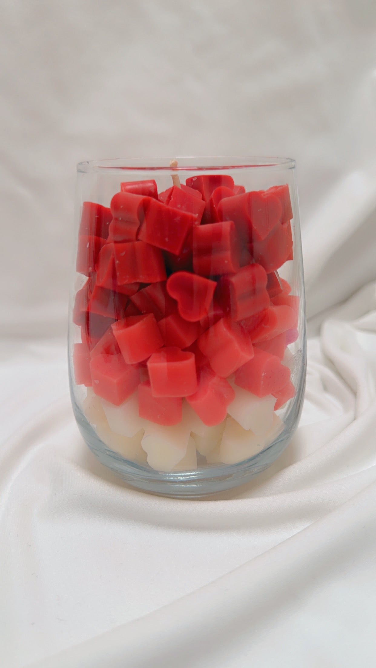 Glass jar with mini heart candle, exuding charm and elegance. |