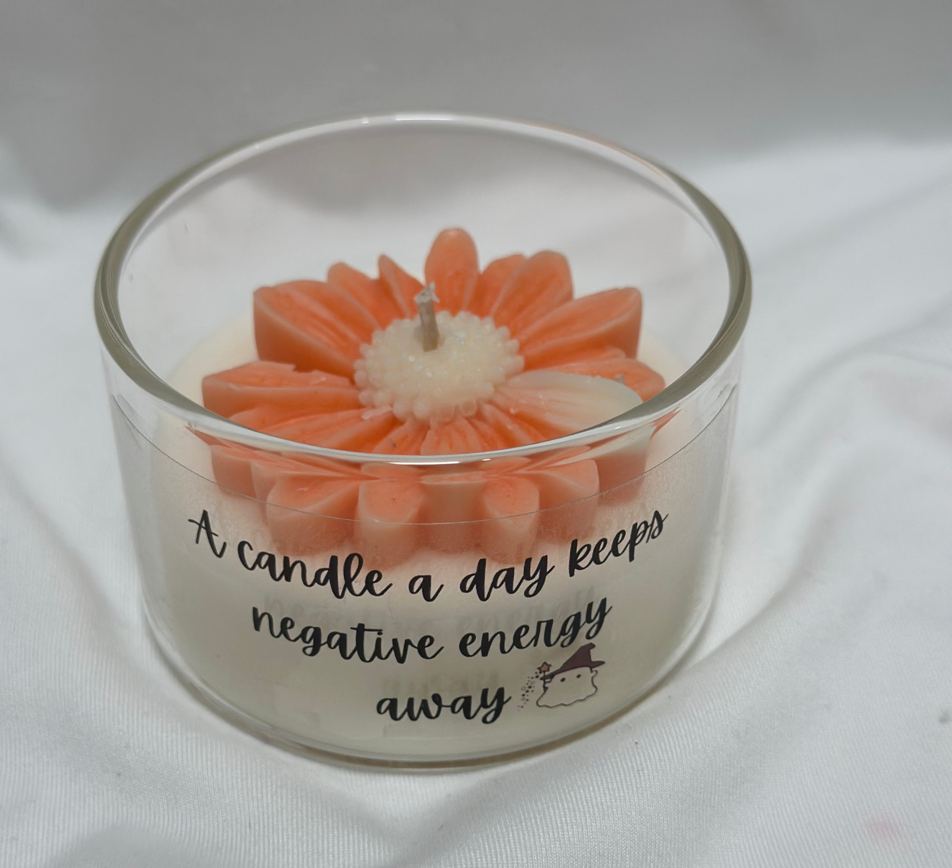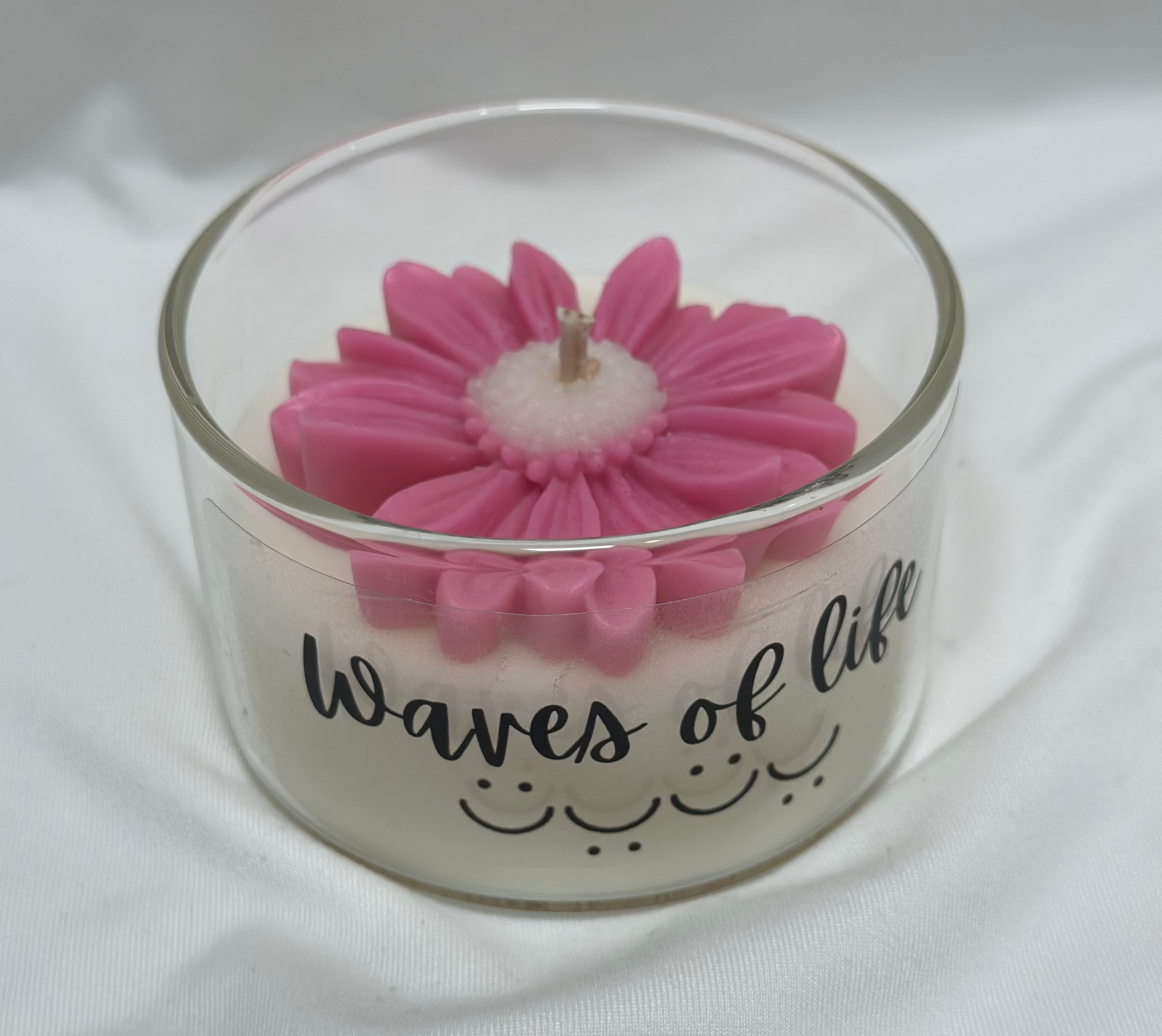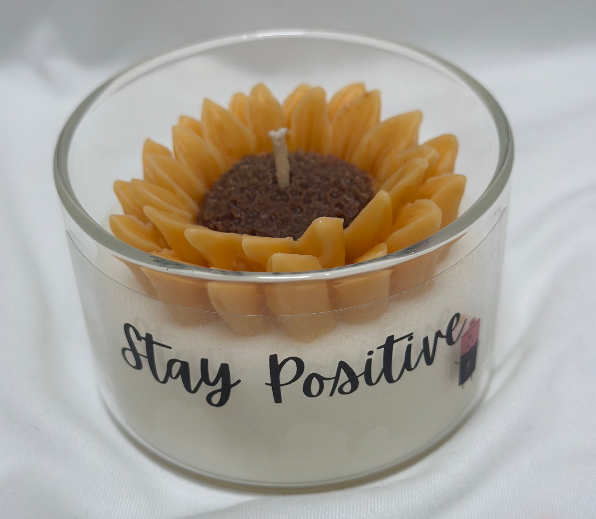 | Design | This candle features a vibrant, colorful flower design on top, complemented by a motivational quote sticker on the jar. The design adds a cheerful and inspiring touch, making it perfect for brightening any room or mood. |